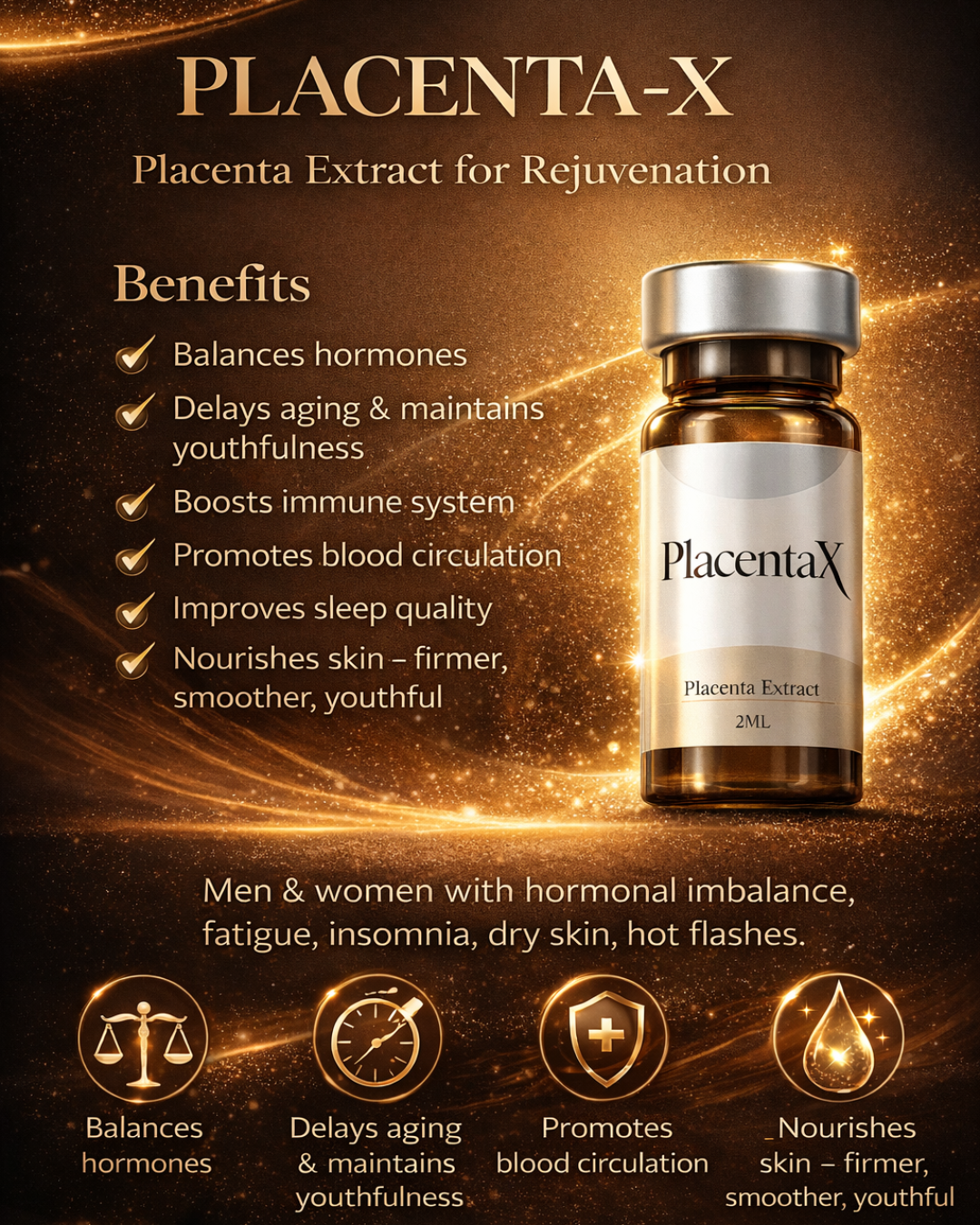 PLACENTA is a placenta extract enriched with essential hormones Estradiol • FSH • Beta-hCG • Progesterone • Testosterone